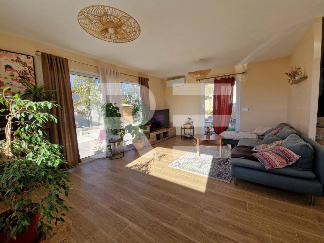 MAISONL’AGENCE REGARD VOUS PROPOSE EN EXCLUSIVITE CETTE GRANDE MAISON FAMILIALE PLEINE DE CHARMES DES ANNEES 70 (rénovée) IMPLANTEE SUR UN TERRAIN DE 316 m² AVEC JARDIN, BASSIN, TERRASSE/BALCON ET STATIONNEMENTSitué dans un lotissement résidentiel, cette maison familiale vous réserve beaucoup de possibilités.D’une surface chauffée totale d’environ 160 m² (mets la surface indiquée dans le DPE), cette maison se compose de deux niveaux aux usages complémentaires :ETAGE– PARTIE PRINCIPALE HABITABLEUn bel espace de vie lumineux d’environ 90 m², avec cuisine américaine ouverte sur salle à manger et salon, auquel se rajoute deux chambres, une salle d’eau et un balcon exposé Sud.La rénovation récente (2019) met en valeur des matériaux de qualité et un confort sans égal…REZ-DE-CHAUSSEE – ESPACES ANNEXES AMENAGESActuellement utilisés comme grande pièce de détente avec recoin cuisine, commodités sanitaires et deux pièces (ancien garage) à usage de bureau.Ces volumes offrent un potentiel d’usage varié en fonction de vos besoins et dispositions administratives.Accès direct à la terrasse et au jardin paysagé avec un bassin de rafraichissement des plus agréables.LES ATOUTS :- Environnement calme et résidentiel- Jardin clos avec possibilité de diviser en espaces distincts (2 entrées sur le terrain)- Stationnement pour plusieurs véhicules- Maison entretenue et rénovée avec soinLes informations sur les risques auxquels ce bien est exposé sont disponibles sur le site Géorisques : www.georisques.gouv.fr. »