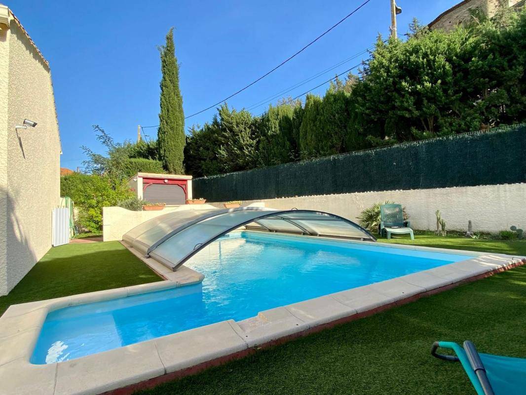 MAISONVilla 6 PIÈCES 148 m². Entre Carcassonne et Narbonne Elle comprend un vaste séjour-cuisine (entièrement équipée) d’une surface de 56m², , quatre chambres dont une suite parentale de 21m² avec dressing et salle d’eau, un bureau, 2 WC, une seconde salle d’eau et une buanderie. Une belle terrasse abritée par une pergola, une piscine de 7×3,50, une cuisine d’été équipée, un garage, un terrain de pétanque. Un studio indépendant climatisé de 18 m². Le tout sur une parcelle de plus de 820m² avec un puits entièrement clôturée et sans vis-à-vis. Côté prestations: la maison est équipée de la climatisation gainable, d’un chauffe-eau thermodynamique, des volets roulants électriques, de la fibre. Les informations sur les risques auxquels ce bien est exposé sont disponibles sur le site Géorisques : www.georisques.gouv.fr. DPE : A (41 KWh/m²/an) / GES : A (1 KgCO2/m²/an). Coût annuel d’énergie estimé entre 569€ et 769€. Prix moyen des énergies indexé années 2021,2022,2023 (abonnements inclus). Votre agence immobilière KW OXYGÈNE vous invite à découvrir toutes les originalités de cette maison en vente en prenant rendez-vous avec l’un de nos négociateurs immobilier. Gilbert RIU au : 06*58*17*53*50 ou par mail : (Email supprimé), Conseiller en immobilier EI (sans détention de fonds) immatriculé au RSAC de CARCASSONNE sous le numéro 337 804 199, Titulaire de l’attestation collaborateur pour le compte de KW OXYGENE PERPIGNAN. Lesa LEBERRE-COLLINS au 06*09*52*75*73 ou par mail : (Email supprimé), Conseillère en immobilier EI immatriculée RSAC de CARCASSONNE sous le numéro 454090887 titulaire de l’attestation collaborateur pour le compte de KW OXYGENE PERPIGNAN . Honoraires à la charge du vendeur
