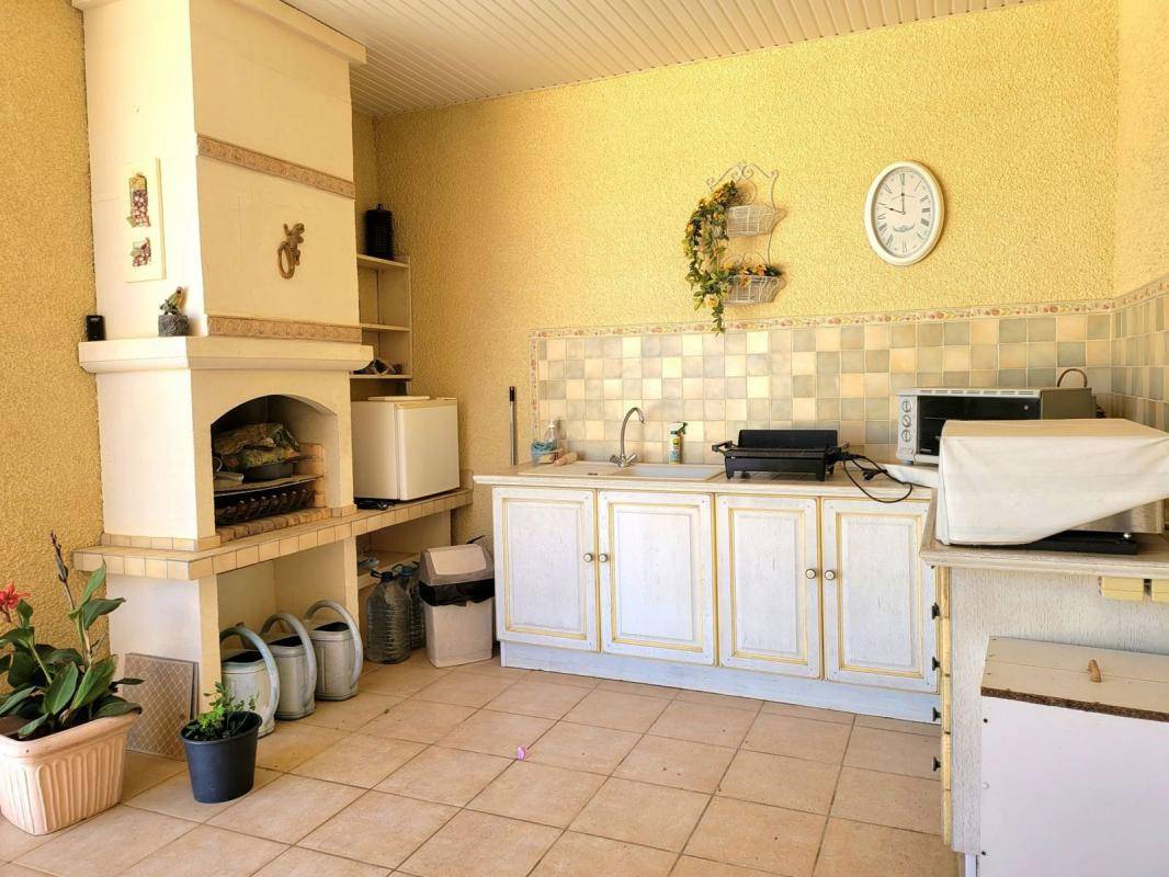 L'extérieur n'est pas en reste : double garage, carport pour camping-car, belle piscine entourée de plages pour se détendre au soleil, ainsi qu'une cuisine d'été parfaitement équipée avec plancha et barbecue pour vos repas en plein air , ainsi qu' une douche et wc