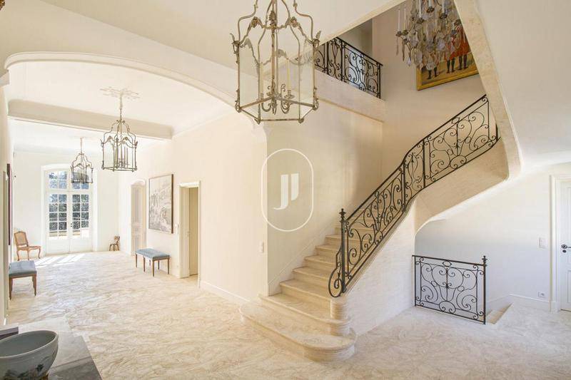 En exclusivité, Janssens Immobilier Knight Frank est heureux de vous proposer cette magnifique bastide récente, située à Saint-Marc-Jaumegarde, dans un secteur très recherché pour son environnement calme et verdoyant proche du centre-ville d’Aix-en-Provence.Cette belle demeure de 648 m² environ, sise sur 14.000 m² de terrain, est bâtie selon les règles anciennes des bastides provençales, avec les génoises 4 rangs, la partie basse des murs extérieurs évasée. Construite en 2010, cette propriété présente une opportunité rare d’acquérir un bien qui possède les allures des demeures anciennes, les hauteurs des plafonds majestueuses, de grandes pièces spacieuses, avec tout le confort d’aujourd’hui, en parfait état.La maison principale jouit de 600 m² environ. Le rez de chaussée dessert un vaste hall d’entrée, grand salon, salle à manger, cuisine indépendante équipée, arrière-cuisine et buanderie.Une suite parentale avec une salle d’eau indépendante, bureau, dressings, sol en parquet et en pierre de taille sont également à disposition en rez de chaussée, avec en sus un accès terrasse privé.La partie nuitée est complétée au premier étage avec cinq suites avec salle d’eau ou salle de bains et dressings.Le sous-sol accueille quant à lui une belle superficie de 130 m² mise à disposition pour l’intendance (lingerie et buanderie), ainsi qu’une pièce de 105 m² qui offre (entre autres), la possibilité de créer une salle de cinéma.Enfin, une maison gardien de 95 m² est également prévu, avec séjour, cuisine équipée et wc au rez de jardin et deux chambres et une salle de bain à l’étage.Vous apprécierez sans nul doute les extérieurs de la propriété, soigneusement entretenus avec piscine de 16 m x 5,5 m, revêtue d’un carrelage en faïence, margelles en pierre de taille, implantée légèrement à l’écart de la maison, et qui offre ainsi un coin de détente parfait, entouré d’un magnifique jardin arboré et paysagé.Un garage, une orangeraie de 11 m² et un pool house 40 m² avec une cuisine équipée, espace dinatoire, local technique, salle de douche indépendante complète les prestations extérieures de cette superbe bastide.Cette noble propriété est unique par son emplacement, ses prestations, son environnement boisé, sans vis-à-vis ni nuisances sonores.Propriété à vendre par notre agence immobilière d’Aix en Provence.Grâce à notre partenariat exclusif avec Knight Frank, leader mondial de l’immobilier de prestige, Janssens Immobilier offre à chaque propriété une visibilité internationale exceptionnelle. Cette alliance renforce notre expertise locale par la puissance d’un réseau présent dans plus de 50 pays.Les informations sur les risques auxquels ce bien est exposé sont disponibles sur le site Géorisques : www.georisques.gouv.frConformément à la réglementation en vigueur, la surface DPE de ce bien est établie sur la base d’un mesurage normé de la surface habitable. Ce mesurage peut différer de la surface totale mesurée avec précision par nos équipes commerciales.