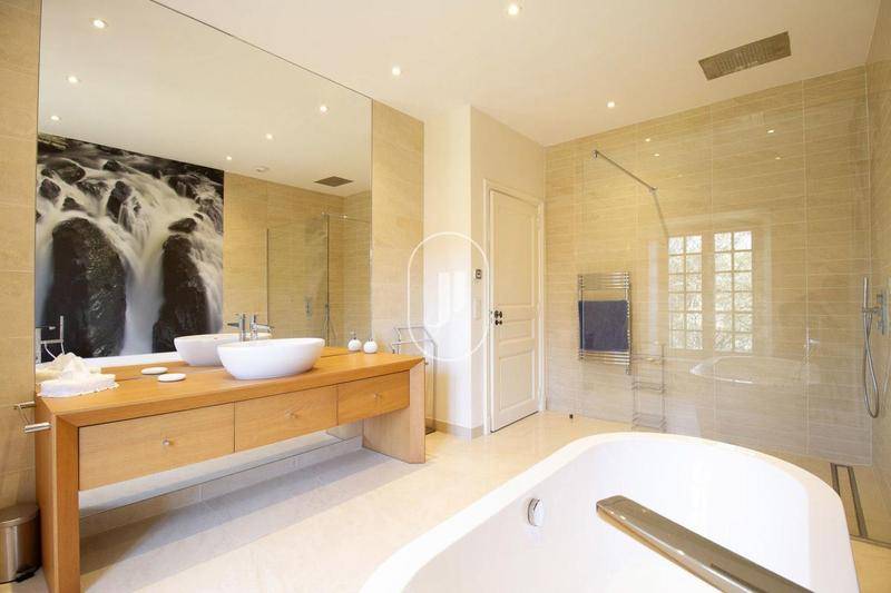 Une suite parentale avec une salle d'eau indépendante, bureau, dressings, sol en parquet et en pierre de taille sont également à disposition en rez de chaussée, avec en sus un accès terrasse privé.