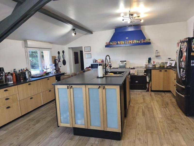 La maison principale, d'environ 222 m², offre de beaux volumes et constitue une maison familiale idéale. Elle se prête parfaitement à une résidence principale ou secondaire, dans un cadre champêtre recherché à quelques minutes du littoral.