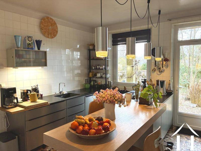 MAISONEmplacement et BâtimentAu milieu d’un charmant vieux village, à la frontière du Parc Naturel du Morvan et de la Côte d’Or, se trouve cet ancien hôtel/restaurant de village. Le bâtiment a été transformé par les propriétaires actuels en une magnifique maison avec un grand atelier d’artiste.Agencement et PossibilitésL’agencement de l’étage supérieur est encore entièrement comme il l’était autrefois, avec pas moins de 10 chambres et des sanitaires. Cela offre d’énormes possibilités pour ceux qui veulent combiner travail et logement.Potentiel CommercialLancez ici un B&B dans un emplacement touristique idéal, situé entre le Parc Naturel du Morvan d’un côté et les régions viticoles de l’autre.Projets CréatifsOn peut également envisager l’utilisation de l’espace pour des projets dans le domaine de l’art et de la musique, en combinaison avec le logement.En résumé, les possibilités sont infinies ! Venez vite voir ! Description du bienSitué à un carrefour paisible dans un village pittoresque, se trouve ce bâtiment solidement construit ancien hôtel/restaurant.Agencement du bienEn entrant, on découvre le large couloir avec un bel escalier en chêne ancien menant à l’étage, ainsi qu’un toilette. Par la salle à manger conviviale et la cuisine récemment refaite, on accède à la grande salle de séjour avec des portes-fenêtres et beaucoup de lumière naturelle. Plus à l’arrière se trouve l’énorme atelier avec de nombreuses fenêtres et des portes-fenêtres donnant sur le jardin latéral. Au rez-de-chaussée, il y a également une grande chambre avec salle de bain/toilette privative, équipée de portes-fenêtres ouvrant sur le jardin arrière.Par l’escalier dans le couloir, on accède à l’étage, où des pièces et sanitaires sont disposés des deux côtés. L’agencement à l’étage reste entièrement comme il était autrefois, et est en très bon état.Possibilités d’aménagementLa disposition des chambres à l’étage est facilement modifiable, car de nombreux murs et cloisons ne sont pas porteurs. De plus, un escalier mène au immense grenier, qui occupe un grand espace sur toute la superficie du sol. Un grenier avec encore de nombreuses possibilités !Sous-sol et espaces de rangementSous la maison se trouve la grande cave, accessible par un large escalier à l’arrière de la maison. Dans cette cave sèche, il y a de nombreuses possibilités pour du stockage, un atelier ou une cave à vin. Actuellement, la cave est utilisée comme espace de rangement et local de chauffage, où se trouve la chaudière au fioul.Sur le côté de la maison, il y a un grand abri solide pour le stockage de bois, sous lequel se trouve une cave voutée. Le jardin est joliment aménagé et offre beaucoup de privacy en été. Ce bien est présenté par : Chris Van Halewijn, (Numéro supprimé), E.I. Agent Commercial, RSC Chalon s/ Saône 880 680 848