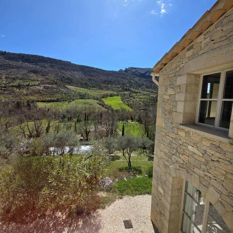 BERNADETTE DELARBRE (AGENCE STYL'IMMO BUIS LES BARONNIES) VOUS PROPOSE EN EXCLUSIVITE, cette époustouflante maison en pierre à 5 minutes de Buis les baronnies (la roche sur le buis) avec une vue à couper le souffle sur le Saint Julien et la vallée. Cette maison d'une surface habitable de 155 m² bénéficie d'un terrain arboré d'oliviers (3 580 m²), et d'une belle piscine (4.30 x 9 m P 1.60). A l'intérieur, sur deux niveaux, elle est composée au rez-de jardin, d'un hall d'entrée (8.80 m²), d'un wc (1.64 m²), un dressing, un accès au garage (18.50 m²) par l'intérieur, une cuisine équipée (15 m²), ouvrant sur la terrasse couverte (16 m²), un cellier/cave (10 m²), un grand séjour salle à manger (23.80 m²), avec de grandes fenêtres en arcade, offrant cette vue imprenable sur le Saint Julien, et deux salons dos à dos (26 m²) avec un insert d'un côté, A l'étage, on trouve un salon TV,(15 m²), 4 chambres (10.85 m², 11.75 m², 12 m² et 13.89 m²), une salle d'eau (11.14 m²), un wc (1.22 m²). Les prestations intérieures sont de très belles qualité (fenêtres bois double vitrage, clim réversible dans le séjour/salon, insert, radiateurs électriques dernière génération, électricité refaite à neuf etc..). Elle bénéficie également d'un abri bois/outils à l'arrière de la bâtisse. L'environnement est magique et invite à la méditation et à la contemplation. Coup de coeur garanti ! Alors contactez moi pour des renseignements complémentaires ou pour une visite au (Numéro supprimé).
