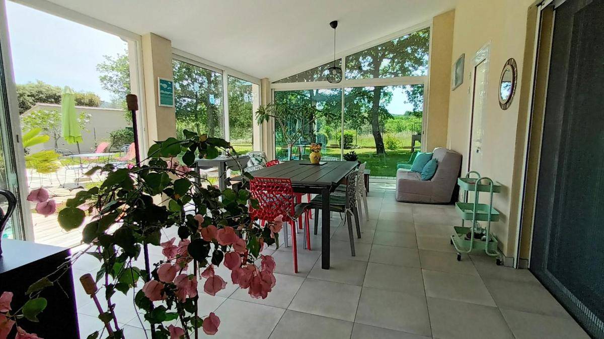 Bernadette DELARBRE AGENCE STYL'IMMO A BUIS LES BARONNIES vous propose à la vente, à Mollans sur Ouvèze, en position dominante, face au Mont Ventoux, de vous installer dans cette splendide villa de plain-pied (2009) d'une surface de 150 m², sur un terrain plat, arboré, clôturé (1 617 m²) et jouxtant une zone naturelle inconstructible avec une belle piscine traditionnelle avec traitement au sel (4 x 9) La maison est composée d'une belle véranda (salon sam de 26 m²) d'une pièce à vivre exceptionnelle de 62 m² (cuisine, salon salle à manger), d'un espace bureau (7.90 m²). Pour accéder à l'espace nuit, un couloir, trois belles chambres (13, 12 et 14 m²), une salle de bains (7.75 m²) avec baignoire d'angle, douche italienne et double vasques, un wc séparé. la maison bénéficie d'un garage (21 m²) et d'un châlet (18.50 m²) abritant les outils de jardin et le matériel pour la piscine. Les prestations intérieures sont de très grande qualité (grandes et nombreuses ouvertures en double vitrage, avec vue directe sur le ventoux, chauffage au sol air/eau avec thermostat connecté réversible, volets roulants avec commande centralisée, très beaux carrelages et faïences, placards muraux etc...). Le terrain offre également des espaces de jeux tant pour les enfants que pour les grands (cabane, jeux de boules, balançoire etc...) Il est également arboré de belles haies, de fleurs, vous invitant à la détente. Ne ratez pas cette incroyable maison qui a été conçue pour le bien-être, de ses occupants. Nombreuses autres prestations. Alors contactez moi pour de plus amples renseignements ou pour un rendez-vous de visite au (Numéro supprimé)