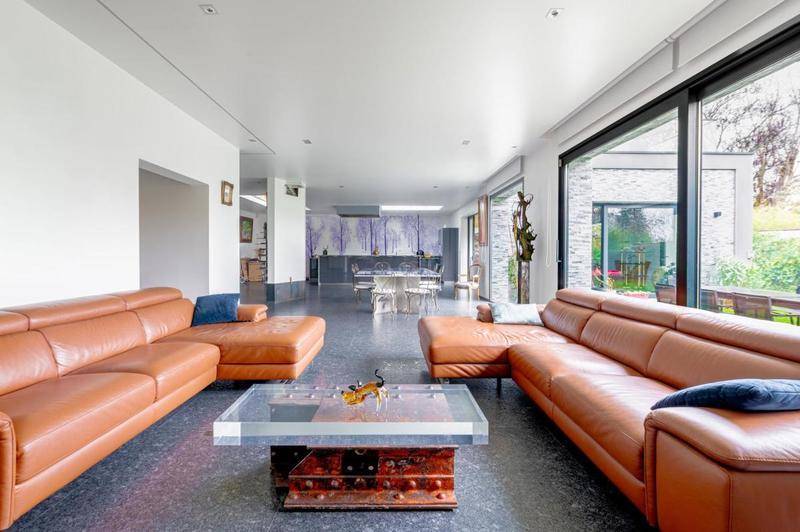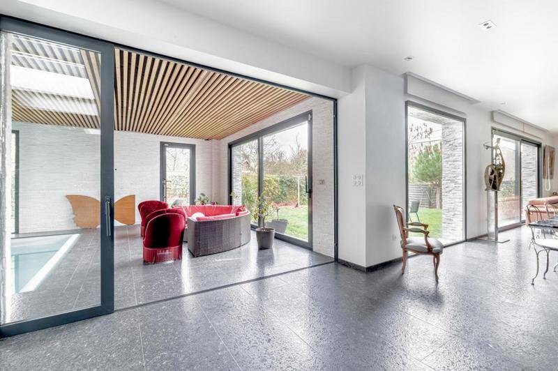 Vous bénéficierez également d'un terrain de 1025m2 parfaitement entretenu et entièrement clôturé avec son jardin paysagé sans vis à vis, d'un vaste garage de 50m2 avec porte motorisée, d'une véritable cave à vin de 35m2, d'un atelier de 30m2, d'une piscine intérieure chauffée, de 200m2 de terrasses dont une en “balcon/terrasse”, et de prestations soignées, de qualité, haut de gamme, et exceptionnelles (planchers chauffants, granite, quartz, labradorite (pierres), plafonds en “staff”, ouvrants en aluminium, en verre anti effraction triple vitrage, très grandes baies vitrées, stores opaques intérieurs, cave avec plafond en verre résistant, belle hauteur sous plafond de 2m80, visiophone, fibre optique, briquettes de parement, alarme, caméras de surveillance, sols en granite, éclairages extérieurs, escalier sur mesure en acier, puits de lumière, parquet massif, salles de bain et salles d'eau et vasques en granite, portes, verres traités thermiquement, toutes les chambres donnent accès à la terrasse surélevée, onyx éclairé, pierres, éclairage autonome, etc…).