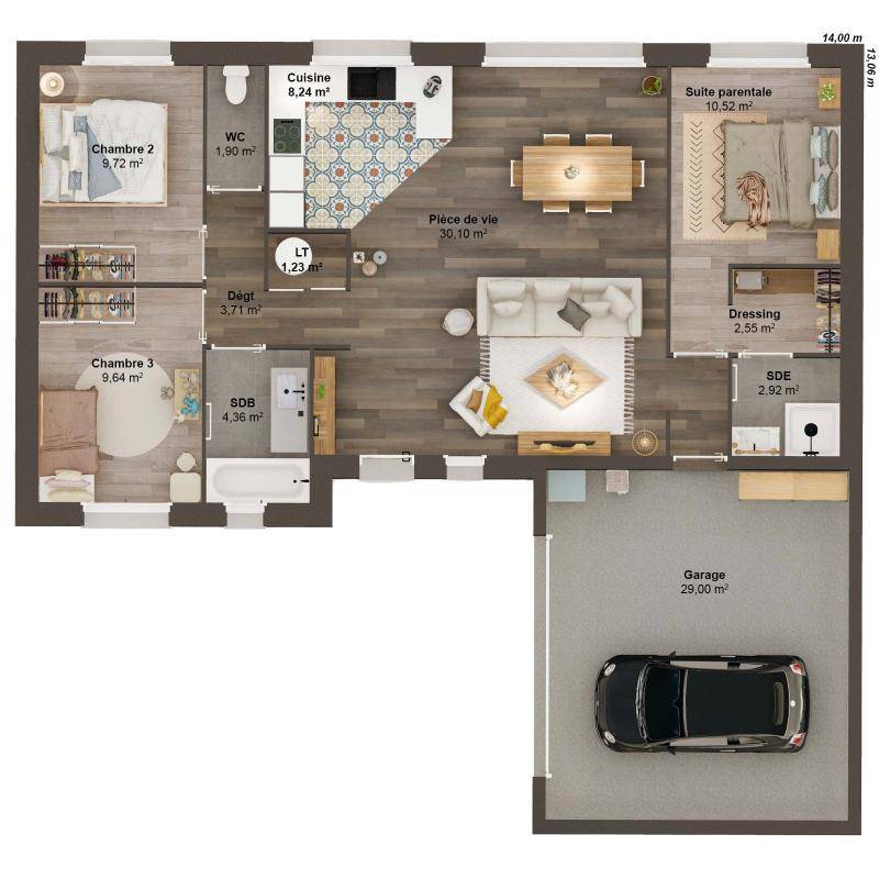 TERRAIN ET MAISONMaison neuve à construire GINKGO_3CH_97_V1 BELLE MAISON DE 3 CHAMBRES Imaginez votre futur chez-vous, deux fois plus grand : Double garage, deux espaces nuit bien séparés composés de 3 chambres, deux salles de bains, deux grandes baies vitrées ouvertes sur deux terrasses, dont une abritée sous un grand préau idéal pour les journées ensoleillées. Plus de confort, plus de lumière, plus de liberté — toujours accessible avec Maisons Alysia. • Lumineuse avec cuisine ouverte donnant sur son jardin. • Beaux volumes et distribution optimisée des pièces pour votre confort de vie. • Aménagements et équipements de haut niveau : volets roulants motorisés et connectés, système de chauffage par pompe à chaleur, domotique, carrelage grand format. ET SI VOUS FAISIEZ CONSTRUIRE AVEC MAISONS ALYSIA ?Testez notre configurateur en ligne et chiffrez instantanément votre projet personnalisé, téléchargeable. • Gratuit, rapide et sans engagement. • + de 250 modèles de maisons personnalisables. • Calculettes en ligne pour identifier votre budget et évaluer votre future mensualité. Rendez-vous sur notre site maisons-alysia(.com) pour concrétiser votre rêve. Contactez-nous au (Numéro supprimé) pour finaliser votre projet ! Coût du terrain inclus dans cette offre. Hors peintures et faïence, revêtements de sol des chambres. Hors assurance dommages-ouvrage, frais de notaire et frais d’adaptation du terrain éventuels.Cette offre est proposée en collaboration avec notre partenaire foncier terres à maisons selon disponibilités. Contact : au (Numéro supprimé).