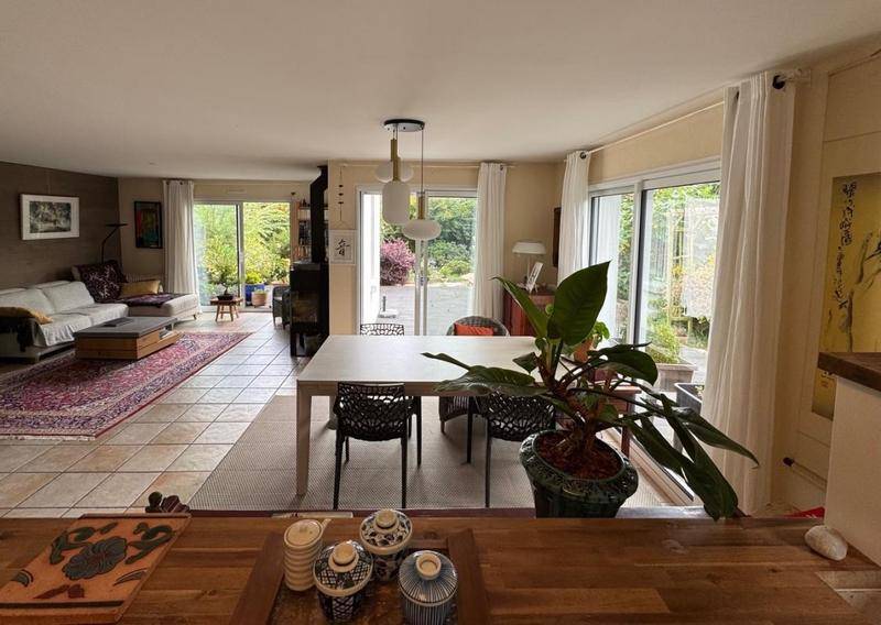 MAISONSituée sur la commune de Saint-Évarzec, à proximité des axes et dans un environnement verdoyant, cette maison de plain-pied offre de beaux volumes et un fort potentiel d’aménagement.Implantée sur une parcelle de plus de 2 700 m², elle développe environ 149 m² habitables et se compose de 6 pièces, dont 4 chambres, permettant une vraie vie de plain-pied, idéale pour une famille ou un projet de résidence principale.Descriptif du bien :La maison propose :Un salon-séjour lumineux d’environ 30 m² avec insertUne cuisine aménagée et équipéeQuatre chambres de plain-piedDeux salles de bainsDeux WCUne vérandaDe nombreux dégagements offrant des possibilités de réaménagementUn grand garage d’environ 38 m² complète l’ensemble, avec porte motorisée et alimentation triphasée.Caractéristiques techniquesMaison à structure boisToiture en ardoise synthétique, en bon étatChauffage principal au gazInsert boisPrésence de radiateurs électriques en complémentDPE : classe DExtérieursLe terrain, offre :Une surface de 2 767 m²Un cadre verdoyant et arboréDe multiples possibilités d’aménagement paysagerCuve de récupération d’eau de pluie qui alimente les WC et machines à laver avec bypassTravaux à prévoirDes travaux de rénovation sont à envisager afin de révéler tout le potentiel de cette maison (mise au goût du jour, amélioration énergétique selon les projets).Une base saine et des volumes intéressants permettent d’imaginer un projet personnalisé.Les + du bien-Vie de plain-pied- Grand terrain- Structure bois- Garage spacieux- Toiture en bon état- Potentiel d’évolution importantVisite virtuelle disponible sur simple demande Grégory Janssens (EI) Agent Commercial – Numéro RSAC : – .