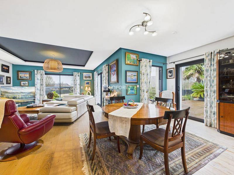 MAISONFOUESNANT – Découvrez cette magnifique maison individuelle de standing construite en 1996, offrant de beaux volumes lumineux d’envrion 215 m². Située au centre de Fouesnant, dans un cadre verdoyant, cette propriété allie charme et modernité pour vous offrir un cadre de vie exceptionnel.Au rez-de-chaussée, une entrée spacieuse avec des rangements donnant accès à une vaste pièce de vie d’environ 60 m² baignée de lumière naturelle grâce à ses grandes ouvertures, une cuisine indépendante aménagée et équipée, un bureau et une suite parentale avec sa salle d’eau privative et son dressing, un cellier, une buanderie, un garage et en sous-sol, la chaufferie et une magnifique cave à vin.A l’étage, un palier avec rangements dessert quatre grandes chambres, dont une avec accès à un balcon, une salle de bains et un toilette indépendant .Le jardin clos et arboré d’environ 1700 m² est un véritable havre de paix avec une grande terrasse donnant sur un bassin. Vous pourrez y organiser des barbecues entre amis ou simplement vous détendre en pleine nature. Un abris de jardin et une cours permettant le stationnement de plusieurs voitures complètent la visite extérieure.Cette maison, bien que nécessitant quelques rafraîchissements intérieurs, est un véritable bijou à personnaliser selon vos goûts.A proximité, vous trouverez plusieurs commodités : commerces, restaurants, écoles, complexe sportif ainsi que l’accès des plages à de 5 minutesNe manquez pas cette opportunité de vivre dans une maison de standing, alliant espace, confort et charme.Contactez-nous dès maintenant pour une visite !Référence 18668 Anne Sophie Hénaff (EI) Agent Commercial – Numéro RSAC : 990 819 344 – Quimper.Les informations sur les risques auxquels ce bien est exposé sont disponibles sur le site Géorisques : www. georisques. gouv. fr
