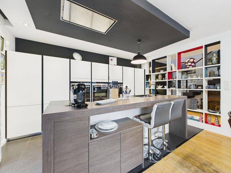 MAISONQUIMPER- EXCLUSIVITÉ – MOULIN VERT – Maison non mitoyenne des années 40 avec ses 2 extensions contemporaines à proximité du centre-ville.Elle comprend une grande pièce de vie de 65 m² baignée de lumière donnant accès à la terrasse et au joli jardin sans vis-à-vis, le tout exposé sud.Dans la 1ère extension, vous trouverez une suite parentale de 25 m² avec une belle vue sur le jardin ; dans la 2ème, vous trouverez une chambre avec salle d’eau privative.A l’étage, 3 grandes chambres dont 2 avec une mezzanine pour un espace bureau, une salle de bains familiale avec 2 meubles vasques, baignoire et grande douche.Un sous-sol partiel accessible de l’intérieur, et vous pouvez stationner 4 véhicules à l’extérieur. L’ensemble sur un terrain clos de 990 m².Visite virtuelle et plan disponible sur demande. Kristen QUINTIN (EI) Agent Commercial – Numéro RSAC : 890 940 968 – Quimper.Les informations sur les risques auxquels ce bien est exposé sont disponibles sur le site Géorisques : www. georisques. gouv. fr
