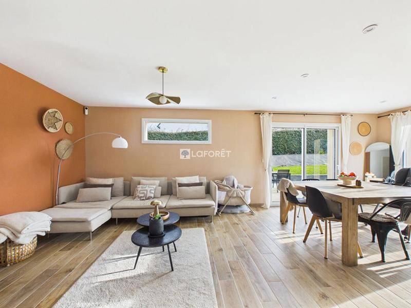 MAISONPLOUHINEC – L’agence Laforêt vous propose cette grande maison, dans le bourg mais en retrait de la route principale, au calme. Cette charmante demeure des années 1950 bien entretenue et décorée avec goût vous offre 4 belles chambres, dont une en rez-de-chaussée. La pièce de vie est moderne et lumineuse, la cuisine est récente et fonctionnelle. Vous pourrez apprécier les parquets massifs d’origine.Au rez-de-jardin : bel espace de presque 40 m2, comprenant : buanderie, chaufferie, espace de stockage et grande pièce à aménager selon ses besoins.Au rez-de-chaussée surélevé : un SAS d’entrée vous permet d’accéder à un couloir desservant la cuisine ouverte sur le salon, formant ainsi une pièce de vie harmonieuse, une jolie chambre, une salle d’eau avec WC.A l’étage : 3 belles chambres décorées avec goûtA l’extérieur : 2 appentis, un grand garage de 47 m2 et un jardin cocon orienté plein sud et clos de murs de pierresUne visite virtuelle est disponible sur demande. Mandat 14483 Virginie Chapeleau (EI) Agent Commercial – Numéro RSAC : 890 666 217 – Quimper.Les informations sur les risques auxquels ce bien est exposé sont disponibles sur le site Géorisques : www. georisques. gouv. fr