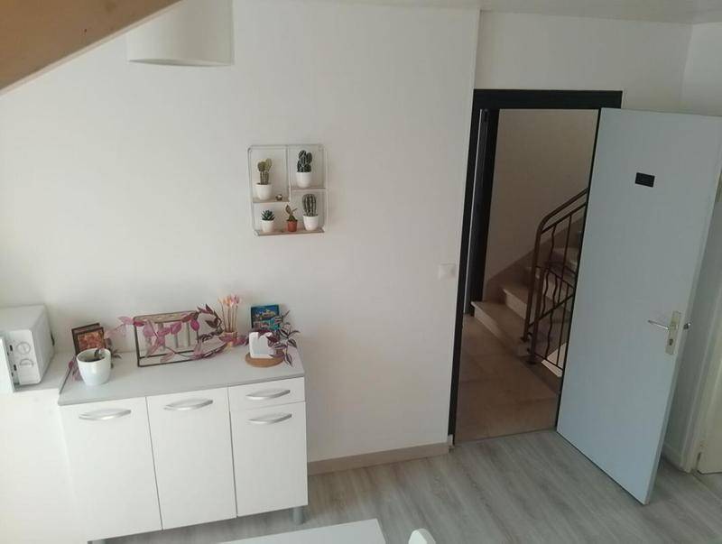 Un deuxième appartement en duplex : Une pièce de vie avec cuisine aménagée et équipée, un salon . Une chambre , une salle de bains et un WC complètent cet étage .