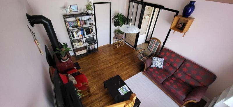 Le rez-de-chaussée est composé d'un salon sur parquet, agrémenté d'un poêle à bois, d'une salle à manger donnant accès au jardin, ouverte sur une cuisine entièrement équipée, d'une salle d'eau avec wc, d'un wc séparé.