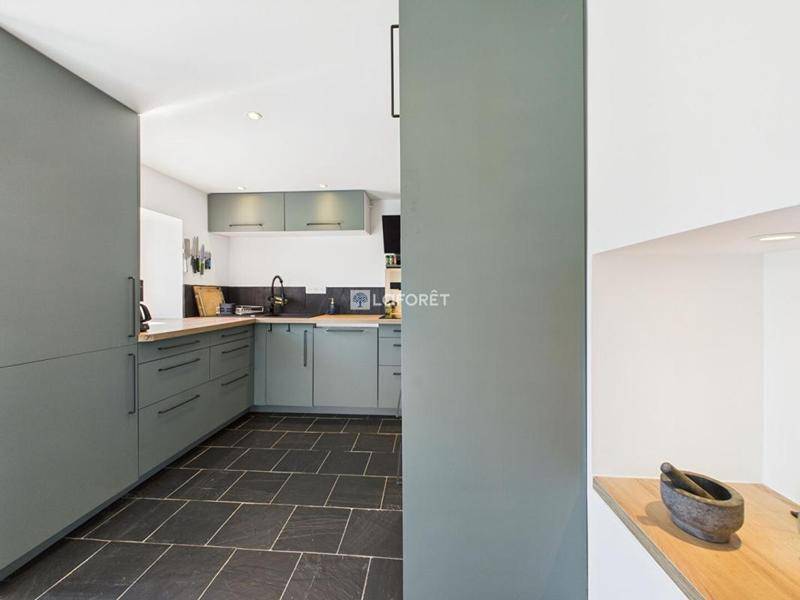 MAISONLAFORÊT PENMARCH a le privilège de vous présenter cette propriété contemporaine de 260 m², nichée dans un environnement paisible et recherché, à seulement 3 minutes des commodités et 5 minutes des plages.Dès l’entrée, cette demeure séduit par ses volumes généreux et sa luminosité.Le salon-séjour, sublimé par un poêle à granulés, offre un espace de vie chaleureux et raffiné, ouvert sur une cuisine américaine aménagée et entièrement équipée, pensée pour allier esthétisme et fonctionnalité.Le rez-de-chaussée accueille également une salle de jeux, un WC indépendant, un dressing, une élégante suite parentale, ainsi qu’un cellier.A l’étage, une mezzanine dessert quatre chambres confortables, un WC, une salle d’eau, une salle de bains, et un grenier aménagé, offrant de multiples possibilités d’aménagement.A l’extérieur, un garage et une piscine viennent compléter les prestations de ce bien d’exception.Une propriété rare, idéale pour une résidence principale ou secondaire, conjuguant standing, sérénité et proximité immédiate du littoral.Mandat : 14184Estimation offerte en contactant Brice GAUCHERELLELes informations sur les risques auxquels ce bien est exposé sont disponibles sur le site Géorisques : www. georisques. gouv. fr