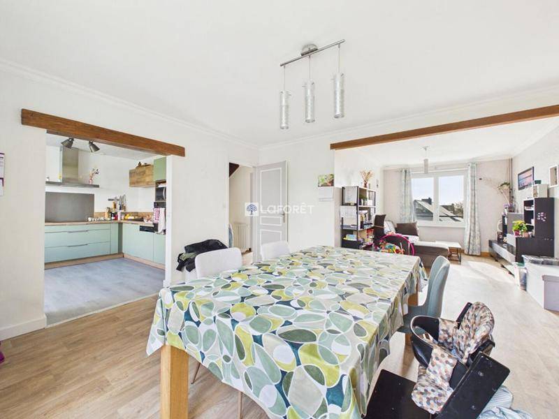 MAISONQUIMPER – Exclusivité LAFORÊT – Laissez-vous séduire par cette maison lumineuse aux beaux volumes !Elle offre une vie de plain-pied avec cuisine aménagée et équipée ouverte sur une pièce de vie chaleureuse avec poêle à bois, salon indépendant, chambre, salle d’eau et WC.A l’étage : le palier dessert trois chambres, salle d’eau, WCSous-sol total avec buanderie, atelier, garage avec porte sectionnelle.Agréable jardin avec plusieurs zones de détente, pour profiter pleinement des beaux jours.Cette maison située à 30 minutes à pied du centre ville est desservie par 2 lignes de bus et bénéficie d’un accès rapide vers les grands axes.Mandat 14505 Nolwenn Le Corre (EI) Agent Commercial – Numéro RSAC : 941 755 498 – Quimper.Les informations sur les risques auxquels ce bien est exposé sont disponibles sur le site Géorisques : www. georisques. gouv. fr