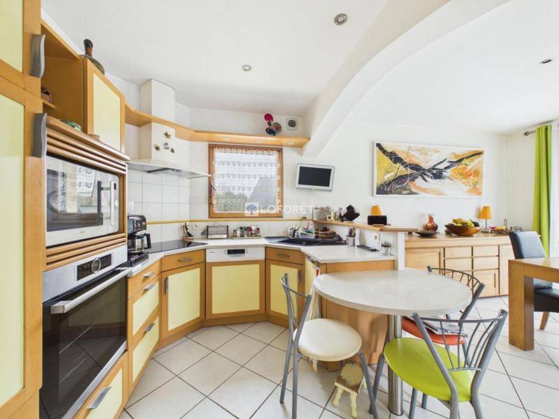 MAISONSituée sur la commune de Saint-Évarzec, à proximité des axes et dans un environnement verdoyant, cette maison de plain-pied offre de beaux volumes et un fort potentiel d’aménagement.Implantée sur une parcelle de plus de 2 700 m², elle développe environ 149 m² habitables et se compose de 6 pièces, dont 4 chambres, permettant une vraie vie de plain-pied, idéale pour une famille ou un projet de résidence principale.Descriptif du bien :La maison propose :Un salon-séjour lumineux d’environ 30 m² avec insertUne cuisine aménagée et équipéeQuatre chambres de plain-piedDeux salles de bainsDeux WCUne vérandaDe nombreux dégagements offrant des possibilités de réaménagementUn grand garage d’environ 38 m² complète l’ensemble, avec porte motorisée et alimentation triphasée.Caractéristiques techniquesMaison à structure boisToiture en ardoise synthétique, en bon étatChauffage principal au gazInsert boisPrésence de radiateurs électriques en complémentDPE : classe DExtérieursLe terrain, offre :Une surface de 2 767 m²Un cadre verdoyant et arboréDe multiples possibilités d’aménagement paysagerCuve de récupération d’eau de pluie qui alimente les WC et machines à laver avec bypassTravaux à prévoirDes travaux de rénovation sont à envisager afin de révéler tout le potentiel de cette maison (mise au goût du jour, amélioration énergétique selon les projets).Une base saine et des volumes intéressants permettent d’imaginer un projet personnalisé.Les + du bien-Vie de plain-pied- Grand terrain- Structure bois- Garage spacieux- Toiture en bon état- Potentiel d’évolution importantVisite virtuelle disponible sur simple demande Grégory Janssens (EI) Agent Commercial – Numéro RSAC : – .
