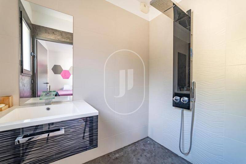 MAISONSuperbe villa contemporaine à vendre avec piscine.Construite en 2013, cette villa contemporaine d’environ 211 m² séduit par ses lignes épurées, ses volumes généreux et sa luminosité. L’ensemble s’articule autour d’un patio central qui diffuse une lumière naturelle dans toutes les pièces et crée une atmosphère calme et harmonieuse.Le rez-de-chaussée accueille un vaste espace de vie composé d’un salon-séjour ouvert sur une cuisine moderne entièrement équipée, prolongée par un cellier fonctionnel. Un espace supplémentaire, aujourd’hui aménagé en salle de musique et salle de jeux, dispose d’une entrée indépendante. Cet espace peut aisément être transformé en studio autonome ou en bureau professionnel, idéal pour une activité libérale.La partie nuit du rez-de-chaussée comprend trois chambres, chacune avec sa salle d’eau privative, dont une belle suite parentale de 38 m² bénéficiant d’un dressing et d’une salle de bains ouverte avec baignoire et douche à l’italienne. Une porte isophonique sépare cette zone du reste de la maison, garantissant confort et intimité.À l’étage, un espace pouvant faire office de quatrième chambre dispose d’une salle d’eau privative et ouvre sur deux terrasses panoramiques offrant une belle vue dégagée jusqu’au Mont Bouquet.Les extérieurs sont soigneusement aménagés et invitent à la détente : piscine au sel, pool house équipé, terrain de pétanque, espaces paysagers et carport pouvant accueillir deux à trois véhicules.Côté confort, la maison bénéficie d’un système de chauffage et rafraîchissement au sol par pompe à chaleur, d’une climatisation réversible à l’étage et dans la partie indépendante, de panneaux solaires photovoltaïques, d’un système audio intégré à l’intérieur (cuisine, salon et suite parentale) ainsi qu’à l’extérieur, au niveau du pool house et de la terrasse. La propriété dispose également d’une VMC double flux, d’un visiophone, d’une alarme, d’un système de vidéosurveillance, d’un forage avec stockage d’eau de 5 000 litres pour l’arrosage automatique et la piscine, d’un récupérateur d’eau de pluie de 2 000 litres, de deux ballons électriques, du tout-à-l’égout et de l’eau de ville.Implantée dans un quartier résidentiel calme et recherché, cette villa récente allie confort moderne, prestations haut de gamme et environnement paisible, tout en offrant une agréable vue dégagée sur le Mont Bouquet. Elle est à vendre par notre agence Janssens Immobilier à Uzès.Grâce à notre partenariat exclusif avec Knight Frank, leader mondial de l’immobilier de prestige, Janssens Immobilier offre à chaque propriété une visibilité internationale exceptionnelle.Cette alliance renforce notre expertise locale par la puissance d’un réseau présent dans plus de 50 pays.Les informations sur les risques auxquels ce bien est exposé sont disponibles sur le site Géorisques : www.georisques.gouv.frConformément à la réglementation en vigueur, la surface DPE de ce bien est établie sur la base d’un mesurage normé de la surface habitable. Ce mesurage peut différer de la surface totale mesurée avec précision par nos équipes commerciales.