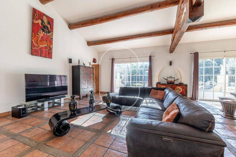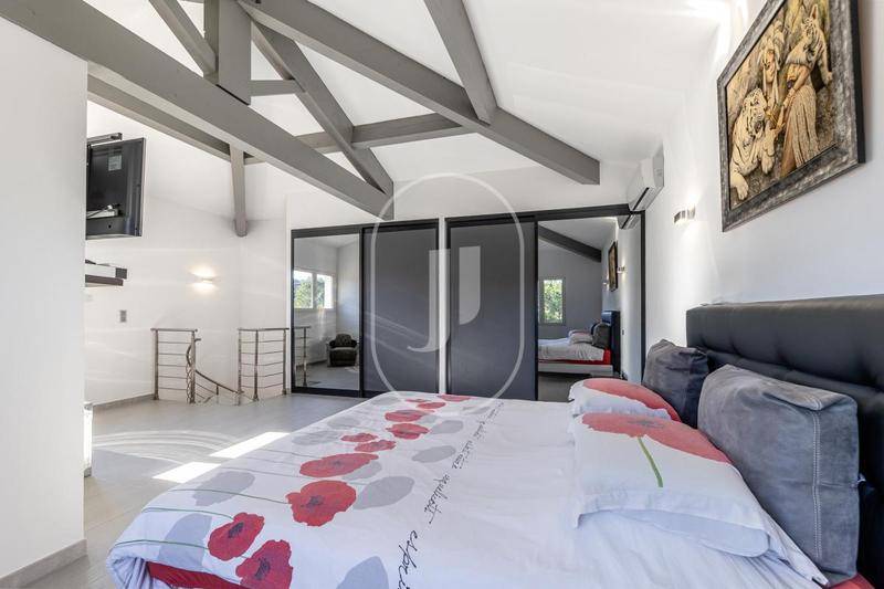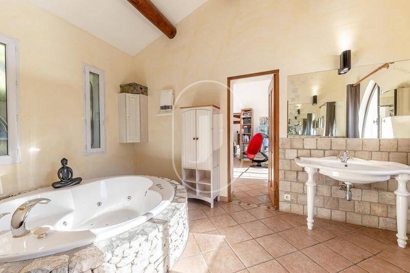 MAISONVilla à vendre à Rochefort-du-Gard par notre agence immobilière de L’Isle-sur-la-Sorgue.À quelques minutes d’Avignon, sur la commune de Rochefort-du-Gard, village Gardois très recherché, cette magnifique propriété offre environ 241 m² sur un très beau jardin clos et arboré de 3 600 m², avec vue dégagée.Cette maison majoritairement de plain-pied a été construite en 2000 et rénovée en 2010 avec des matériaux de qualité. Elle offre un vaste séjour double de plus de 50 m² avec cheminée, une cuisine indépendante équipée d’un électroménager haut de gamme (marque KÜPPERSBUSCH), ainsi qu’un cellier et une chaufferie avec chaudière gaz VIESSMANN et chauffage au sol. Côté nuit, la maison dispose de cinq chambres, chacune avec sa propre salle de bains ou salle d’eau, un vrai confort au quotidien pour une vie de famille ou pour recevoir. Deux WC indépendants complètent l’ensemble et un privé dans la chambre parentale. Enfin, la maison est équipée d’un système d’alarme et d’une aspiration centralisée, contribuant à un cadre de vie serein et fonctionnel au quotidien. Exposée plein sud, elle est très lumineuse grâce à de grandes baies vitrées avec moustiquaires intégrées et volets roulants électriques.Côté extérieur, le jardin paysager offre de beaux espaces de détente ainsi qu’une grande piscine Diffazur de 14 x 7 m, sécurisée par des bornes infrarouges. Le pool house de 50 m², entièrement équipé et comprenant un appartement indépendant, constitue un véritable espace complémentaire : idéal pour recevoir famille et amis en toute autonomie ou envisager un projet d’accueil saisonnier. Pour un confort optimal au quotidien, la propriété dispose d’un portail automatique, d’un système d’arrosage alimenté par forage, ainsi que de plusieurs dépendances totalisant plus de 110 m² : un grand garage, un espace vélos, une cave à vin et un abri voiture.Cette maison à vendre à Rochefort-du-Gard se trouve dans un village prisé, avec commerces, écoles et transports à proximité. Avignon, toute proche, offre un cadre culturel et touristique idéal.Maison à vendre à Rochefort-du-Gard, à découvrir dans notre agence immobilière de L’Isle-sur-la-Sorgue.Les informations sur les risques auxquels ce bien est exposé sont disponibles sur le site Géorisques : www.georisques.gouv.fr“Conformément à la réglementation en vigueur, la surface DPE de ce bien est établie sur la base d’un mesurage normé de la surface habitable. Ce mesurage peut différer de la surface totale mesurée avec précision par nos équipes commerciales.”