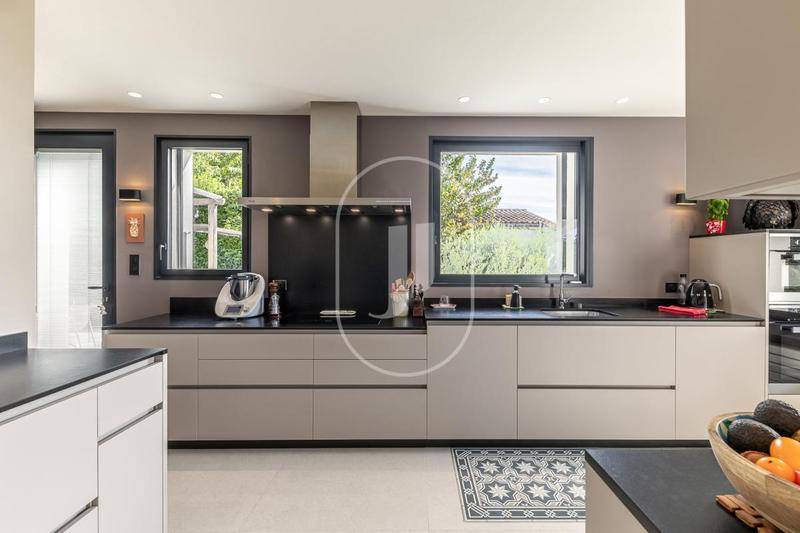 MAISONCette villa contemporaine, à vendre par notre agence de L’Isle-sur-la-Sorgue, est située à proximité d’Avignon, nichée dans un cadre privilégié alliant tranquillité et panorama à 180° sur la vallée, les collines et la majestueuse chaîne des Alpilles.Dès l’entrée, le séjour vous enveloppe par sa luminosité et son élégance :• Cheminée moderne• Cuisine entièrement équipée aux finitions soignées• Grandes baies vitrées donnant sur une terrasse suspendue, véritable balcon sur le paysage• Piscine à débordement intégrée harmonieusement à l’espaceL’espace nuit de la maison principale conjugue confort et intimité :• Suite avec dressing et salle d’eau• Deux chambres supplémentaires partageant une salle d’eauUne maison d’amis indépendante complète cet ensemble, offrant :• Séjour avec cuisine ouverte• Chambre et salle d’eau• Terrasse équipée d’un jacuzzi avec vue dégagée, parfait pour se ressourcerLes extérieurs ont été pensés pour sublimer la vie en plein air et le calme :• Jardin entièrement paysagé, mêlant terrasses abritées, murs en pierre, plantes méditerranéennes et vignes• Zones ombragées propices à la détente• Chemin privé menant à un vaste espace de stationnement : garage, carports et divers espaces de stockageCette propriété se distingue par son intégration paysagère, sa conception contemporaine et la qualité de ses prestations, constituant un bien rare dans un secteur recherché.Propriété à découvrir auprès de notre agence immobilière de L’Isle-sur-la-Sorgue, en France.Les informations sur les risques auxquels ce bien est exposé sont disponibles sur le site Géorisques : www.georisques.gouv.frConformément à la réglementation en vigueur, la surface DPE de ce bien est établie sur la base d’un mesurage normé de la surface habitable. Ce mesurage peut différer de la surface totale mesurée avec précision par nos équipes commerciales.