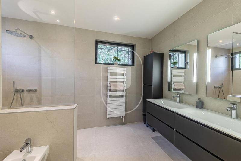 Cette superbe villa rénovée d'environ 279 m² séduit par ses volumes généreux, sa luminosité exceptionnelle, et son confort moderne. Édifiée sur un terrain arboré de 850 m², elle bénéficie d'une vue dégagée et profite d'un emplacement recherché dans un quartier résidentiel calme, à proximité immédiate, à quelques pas, des commodités.