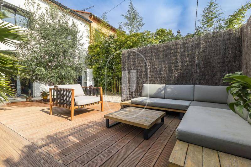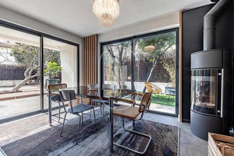 Le jardin, à l'abri des regards, vous offre un cadre de vie paisible et agréable en toute saison. Climatisation, alarme et portail automatique viennent compléter les prestations haut de gamme de cette propriété.