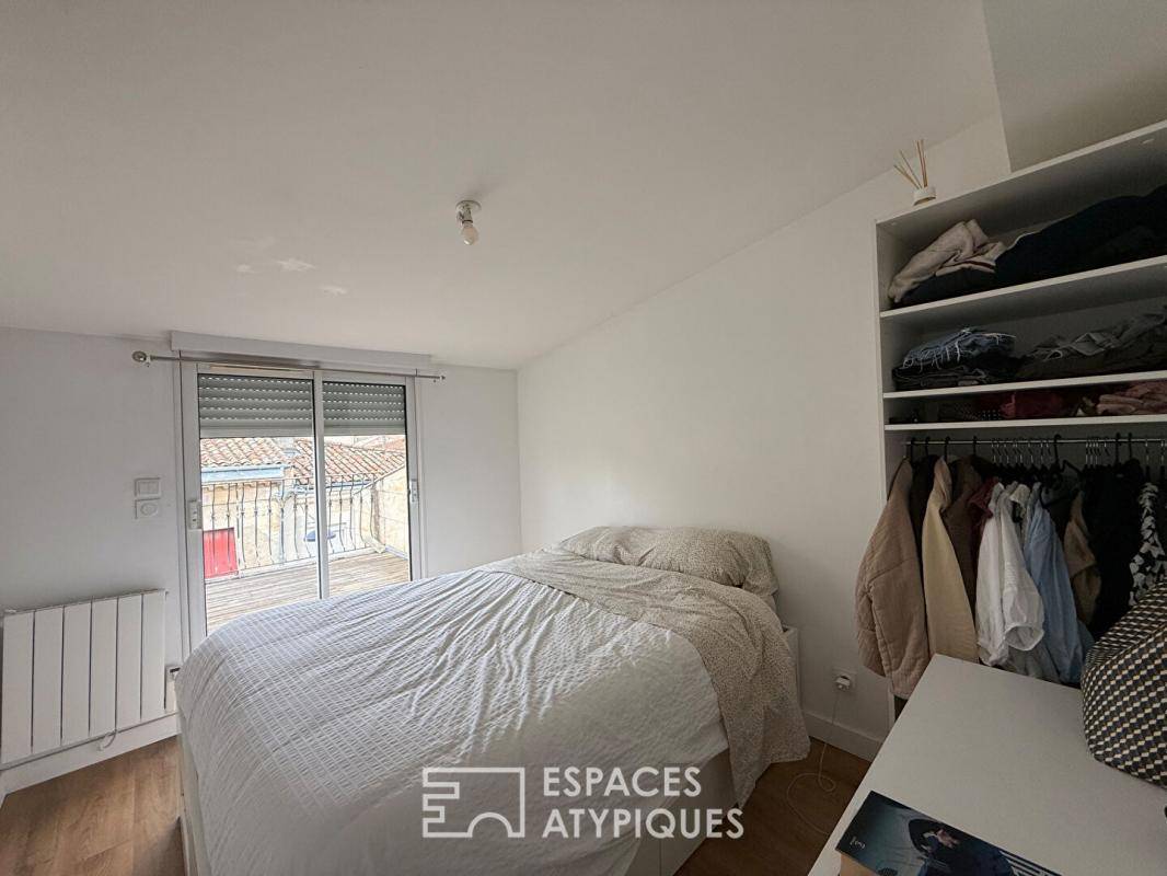 MAISONNichée au coeur du quartier prisé des Chartrons, cette maison individuelle de 72 m² séduit par son esprit contemporain et son agencement atypique en duplex inversé. Offrant une terrasse exposée sud-ouest et un garage privatif de 18 m², elle combine confort moderne, luminosité et emplacement recherché, à proximité immédiate des écoles, commerces et transports.Le premier niveau accueille un espace nuit fonctionnel composé de deux chambres lumineuses et d’une salle de bain élégante, dotée d’un double lavabo, d’une baignoire et d’un carrelage à motifs, conférant une touche de charme à l’ensemble. L’escalier mène à l’étage supérieur où se déploie un vaste séjour traversant, baigné de lumière grâce à ses larges baies vitrées. La cuisine ouverte, mêlant bois clair et finitions noires, s’intègre harmonieusement à l’espace de vie, créant un lieu convivial et chaleureux. L’aménagement, pensé dans les moindres détails, ne nécessite aucun travaux.A l’extérieur, la terrasse prolonge naturellement le séjour, offrant un espace idéal pour profiter du soleil ou partager un repas en plein air. L’exposition sud-ouest garantit un ensoleillement optimal tout au long de la journée. Le garage fermé complète les prestations, un atout rare dans ce secteur central. L’environnement, calme et familial, se situe à deux pas de la place Saint-Martial, des transports en commun et des commerces de proximité, renforçant le confort de vie au quotidien.Ce bien séduit par son organisation inversée originale et son excellent rapport qualité-prix dans un quartier en plein essor. Un lieu de vie à la fois pratique, lumineux et singulier.CLASSE ÉNERGIE : D / CLASSE CLIMAT : B. Montant moyen estimé des dépenses annuelles d’énergie pour un usage standard, établi à partir des prix de l’énergie de l’année 2023 : entre 1070 et 1500 euros.Sam SARABANDI Agent Commercial (Numéro supprimé) Numéro RSAC : 848 880 332 Bordeaux. Sam Sarabandi (EI) Agent Commercial – Numéro RSAC : 848 880 332 – Bordeaux.