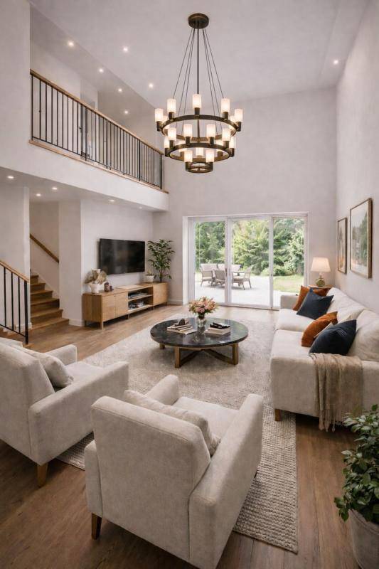 Dès l'entrée, la sensation d'espace est immédiate grâce à un vide sur séjour spectaculaire qui laisse filer le regard vers la mezzanine, offrant un volume aérien et une luminosité naturelle exceptionnelle.