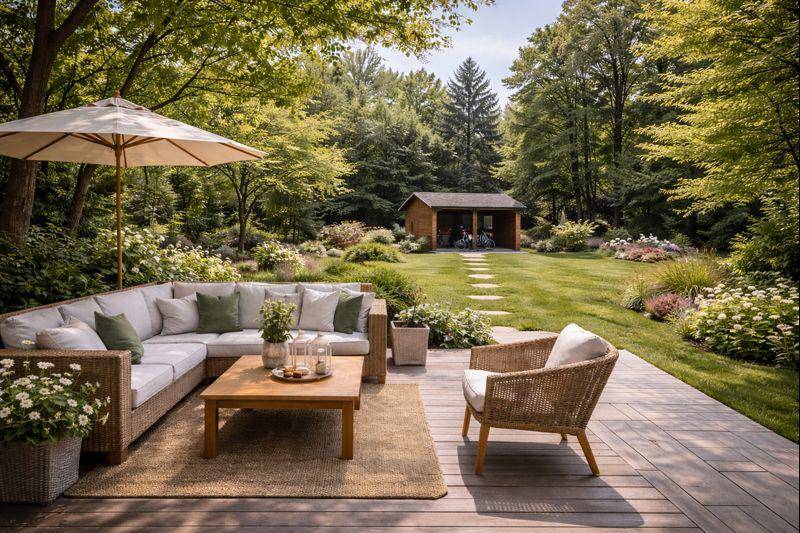 Sa pièce de vie baignée de lumière (40 m²) se prolonge sur une terrasse en bois et un jardin paysager , un terrain d'ailleurs piscinable pour vos futurs moments de détente.