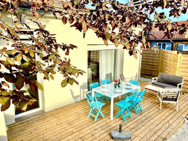 MAISONArcachon • Maison bardage bois de 60 m² • 2 chambres • garage • calme, jardin et terrasseÀ l’Aiguillon, dans un environnement paisible et recherché, à deux pas du Lycée Saint-Elme, du Port et de la Plage, découvrez cette charmante villa en bardage bois, idéale pour profiter pleinement de la vie en bord de mer.Nichée au calme, la maison séduit par son ambiance chaleureuse et lumineuse. À l’extérieur, une belle terrasse exposée sud-ouest et un jardin paysager invitent à la détente, aux repas d’été et aux moments partagés en famille ou entre amis.La maison offre une distribution fonctionnelle et agréable :• Un espace de vie lumineux comprenant un séjour et une cuisine ouverte aménagée et équipée• Une belle terrasse exposée sud-ouest, parfaite pour les repas à l’extérieur ou la détente• Deux chambres spacieuses, dont une avec accès direct à la terrasse• Une salle d’eau• WC indépendantLes plus du bien :• Grand garage de 19 m² avec point d’eau (stationnement, vélos, équipements de plage, ou aménagement complémentaire)• Maison sans travaux• Exposition sud-ouest• Commodités accessibles à pied : écoles, piscine, supermarché, commerces et plage• DPE D• Parfaite pour une résidence principale comme secondairePour toute demande d’informations ou visite, contactez Frédéric COUBRONNE au (Numéro supprimé). RSAC 820491058 PARIS .