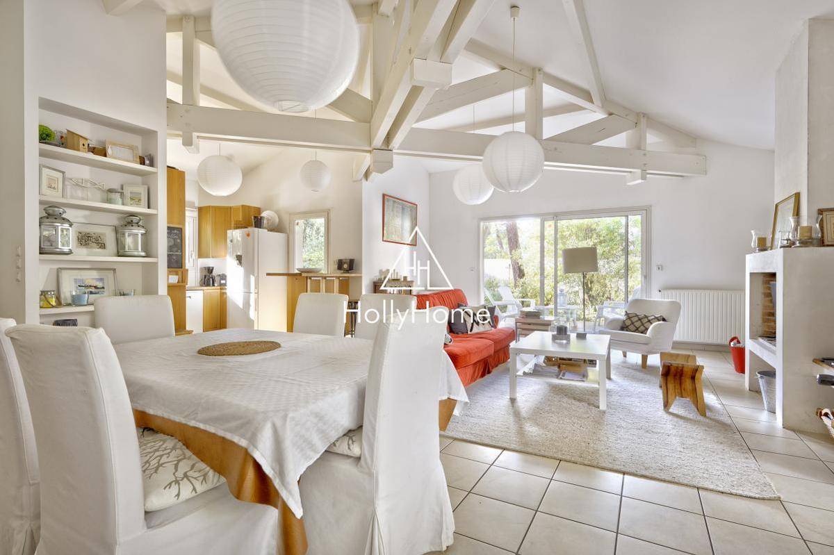 MAISONHollyHome vous présente à la vente une élégante maison Gaume datant de 2006. Une adresse rare et recherchée dans le quartier du Moulleau à 10 minutes à pied de la jetée et de la plage et dans un oasis de verdure à l’abri des regards. Ce bien s’identifie par son architecture raffinée et la qualité des prestations.Avec ses 125 m2 habitables la maison séduit par sa généreuse pièce de vie de 50 m2 ouverte sur la nature, cuisine ouverte, quatre chambres spacieuses, trois salles de bains et un petit garage.Les extérieures, parfaitement intégrés au milieu des pins, invitent à la détente ; deux terrasses sans vis-à-vis permettant de profiter pleinement du cadre naturel tout au long de la journée.Un petit garage pratique pour ranger les vélos, le matériel de plages ou bien des vélos ou une moto vient parfaire l’ensemble.Un lieu rare, à l’abri des regards, pour une vie élégante au coeur des pins du Moulleau.Set in a beautifully preserved natural environment, this single-storey Gaume-style villa embodies the charm and elegance of Le Moulleau.Offering 125 m² of living space, the home features a bright and spacious 50 m² living area opening onto the surrounding pine forest, creating a warm and refined atmosphere.The property offers four well-appointed bedrooms and three bathrooms, ensuring comfort and privacy for family and guests.Outdoors, two secluded terraces provide peaceful spaces to relax and entertain, with no overlooking neighbours.A small garage completes this rare property.A truly unique villa, hidden away among the pines, offering an exceptional lifestyle in the heart of Le Moulleau.