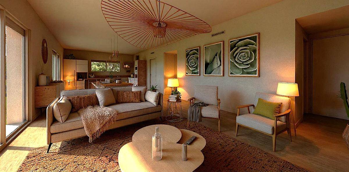 Dès l'entrée, la luminosité naturelle et les volumes généreux donnent le ton.
