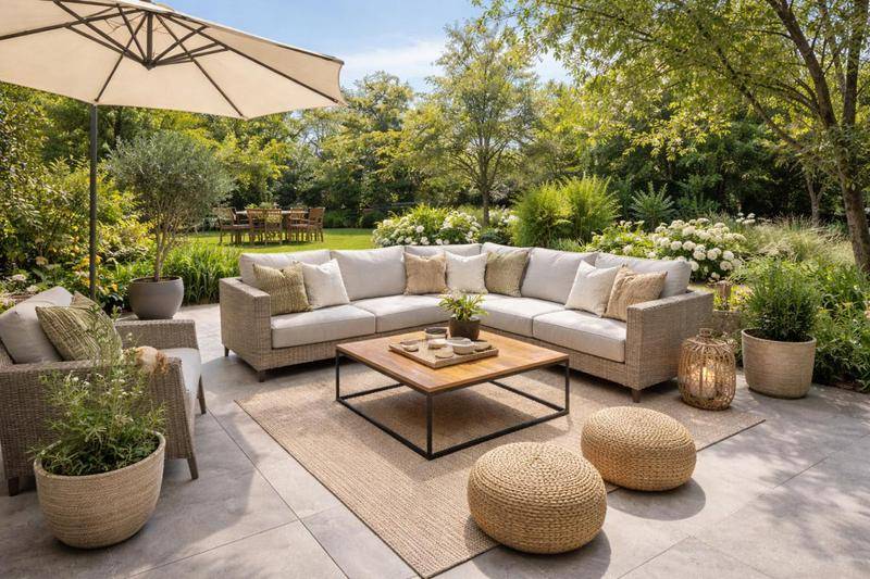 L'extérieur : Le séjour s'ouvre sur une belle terrasse bois de près de 12 m² et un généreux jardin privatif de 146 m², idéal pour vos soirées d'été.
