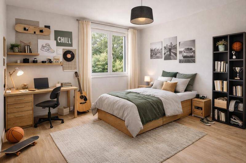 Une suite parentale de 14 m² dès le rez-de-chaussée, incluant sa salle d'eau privative pour une intimité totale.