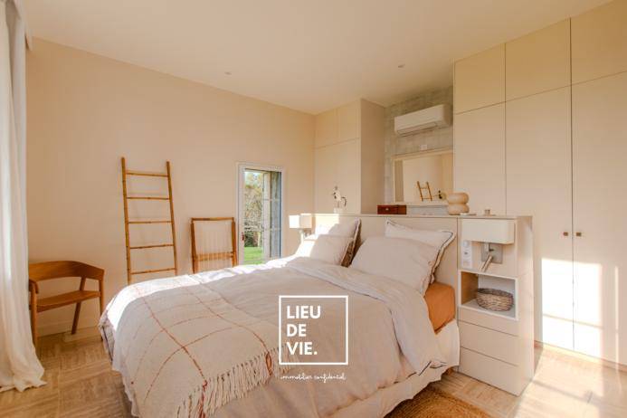 MAISONLieu De Vie, votre agence confidentielle, est fière et heureuse de vous présenter en exclusivité, une maison de caractère avec dépendance rénovée, parc naturel et fort potentiel de renaissance architecturale à juste 10 minutes de Libourne.En position dominante, au sommet d’un tertre, au cœur d’un village girondin vivant et recherché, situé à 10 minutes de la A10 et de Libourne (gare TGV), et à seulement 30 minutes de Bordeaux, et 40mn de l’aéroport, cette propriété singulière offre un cadre de vie rare, apaisant et profondément ancré dans la nature.Le village à moins de 5mn en voiture dispose de toutes les commodités du quotidien : école, centre médical, commerces de bouche, coiffeurs et services de proximité, permettant une vie à l’année confortable, sans renoncer au calme.Implanté sur un terrain d’environ 11 000 m², sans aucune clôture ni mur, l’ensemble s’inscrit naturellement dans son environnement, entouré de bois et de vignes, sans vis-à-vis, au cœur d’un site classé Natura 2000. Le lieu est paisible, lumineux, ouvert, avec un sentiment d’espace et de liberté rare.La maison rénovée – 70 m² environ | Maison d’amisEntièrement rénovée avec soin et exigence, cette maison de plain-pied constitue un lieu de vie immédiat, idéal pour s’installer le temps des travaux et en cible accueillir famille et amis.Elle se compose :• d’un espace de vie avec cuisine équipée traversante et lumineuse• de deux chambres de plus de 20m2 disposant chacune de leur propre salle d’eau ouverte, intégrée avec élégance dans l’espace nuit, afin de préserver la luminosité et de créer une atmosphère fluide et contemporaine• d’une climatisation réversible dans chaque pièceLa maison bénéficie d’une terrasse d’environ 40 m², surplombant la piscine et la grande maison, avec une vue dégagée sur l’ensemble du domaine et la nature environnante.La grande maison de caractère – 250 m² environ à rénoverLa seconde bâtisse, ancienne bergerie, en L, est une véritable maison de caractère, à l’architecture généreuse et aux volumes remarquables. Elle nécessite aujourd’hui une rénovation complète avec reprise de structure, offrant en contrepartie un potentiel architectural rare, déjà largement anticipé.Le projet est sécurisé sur le plan technique :• plans d’architecte existants (valeur 20 000 €),• étude de structure réalisée,• étude de sol menée,• devis disponibles,• permis de construire en cours de validité pour une grange/garage de 47 m².Le projet permettrait de créer• Quatre grandes chambres en suite, de plus de 20 m² chacune (hors salles de bains), dont une suite avec hammam,• Une pièce de vie cathédrale de plus de 50 m², réunissant :• salle à manger,• bibliothèque,• salon,• cheminée insert centrale,Une grande cuisine de 30 m², dotée d’une cheminée monumentale déjà restaurée,Un vestiaire, des toilettes invités et un office.La maison bénéficie d’une luminosité exceptionnelle, avec 32 ouvrants existants, et la création prévue d’une 33ᵉ fenêtre panoramique dans la future cuisine, ouvrant sur la forêt privée.Les extérieurs :Entre les deux maisons, la piscine a été dessinée comme un bassin d’agrément, afin de s’intégrer naturellement au paysage.De dimensions 9 x 3 m, elle est équipée :• d’un volet roulant automatique en fibre de carbone,• chauffant et isolant,• entièrement dissimulé sous la plage.Le terrain accueille également des arbres fruitiers et se prolonge naturellement vers les bois et les vignes. Depuis la propriété, les départs de randonnée sont immédiats, renforçant le lien direct avec la nature environnante.Un lieu de vie apaisant, hors du tempsSilence, lumière, absence totale de vis-à-vis, nature protégée : ce lieu procure un sentiment de calme profond et de déconnexion, tout en restant à proximité immédiate des commodités.Cette propriété s’adresse à des acquéreurs en quête de caractère, de volumes, d’un environnement naturel préservé, et d’un projet de vie structuré, déjà solidement préparé sur le plan technique.En option : un moulin de caractèreFace à la propriété, un moulin ancien, proposé également à la vente en exclusivité, peut venir compléter cet ensemble rare et cohérent : (Lien supprimé) />Un lieu rare, profondément authentique, qui ne se visite pas sans projet. Pour organiser une visite, merci de vous assurer de disposer d’un projet de financement solide et abouti. Nous serons ravis de vous accompagner à chaque étape de cette acquisition singulière. Informations sur les risques : www.georisques.gouv.frLes informations sur les risques auxquels ce bien est exposé sont disponibles sur le site www.georisques.gouv.fr