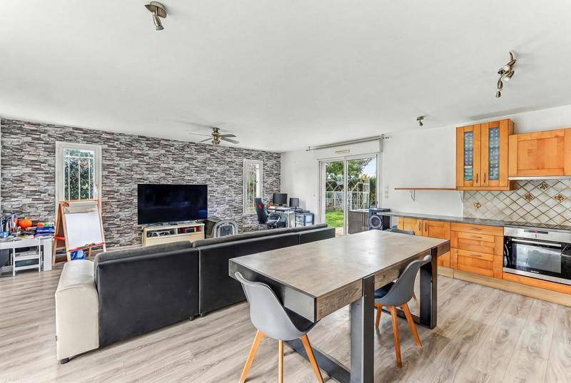 Dans un environnement où règne le calme absolu, cette demeure s'affirme comme un véritable refuge de sérénité. L'espace de vie principal s'articule autour d'une cuisine ouverte et d'un vaste séjour baigné de clarté, offrant un volume généreux tourné vers l'extérieur.