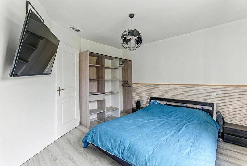 Le confort se prolonge dans l'espace nuit composé d'une chambre principale de dix-sept mètres carrés et de trois chambres supplémentaires, garantissant ainsi l'intimité de chacun. Cet intérieur soigné s'ouvre sur un jardin de mille sept cent cinquante mètres carrés, une étendue verdoyante et paisible sans aucun vis-à-vis.