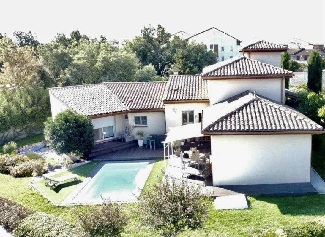 MAISONMAISON 4 PIÈCES MODERNE PROCHE DES COMMERCES DE PLAIN PIED AVEC PISCINE ET GARAGEVenez découvrir cette maison T4 en coeur de ville de Saint Alban de 110 m² environs.Elle se compose, pour la partie jour, d’un vaste salon avec cuisine ouverte aménagée et équipée et sa buanderie attenante.Pour la partie nuit un dégagement dessert trois grandes chambres dont une avec placards, une salle de bains fonctionnelle et un W.C séparé.Pour les extérieurs vous pourrez profiter d’un grand jardin paysagé avec terrasses et piscine couverte. Un abri de jardin offre un espace de stockage supplémentaire.Cette maison dispose d’un garage isolé avec porte de service ainsi que de quatre places de parking.La maison est située à proximité des commerces et des transports en communs notamment des lignes de bus LINEO, 60 ET 69.La classe énergie est notée C pour une consommation énergétique de 127 kWh/m2/an. La classe climat est notée A, ce qui signifie de très faibles émissions de gaz à effet de serre (chiffre annuel : 3 Kg CO2/m²).LES PLUS DE CETTE MAISON: climatisation gainable, poêle à bois, piscine couverte, garage…Contactez votre conseiller immobilier Saint Albanais afin de visiter cette maison dans un quartier recherché de la commune.