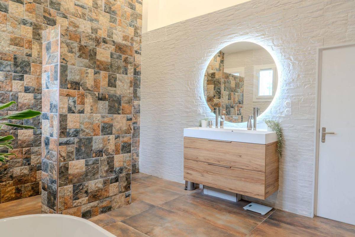 Salle de Bain Luxe (20 m²) : Baignoire, douche à jets, belle hauteur sous plafond.