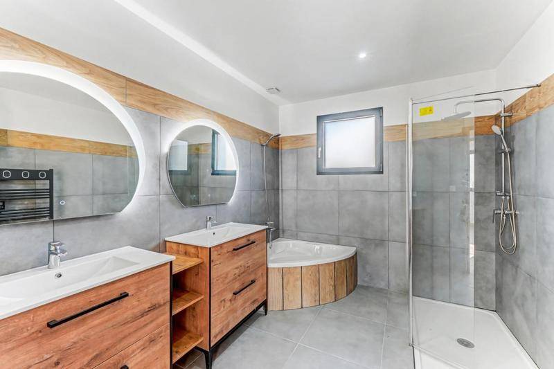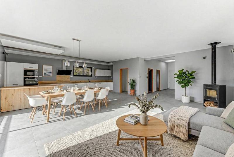 Prestations de qualité : plancher chauffant et rafraîchissant, aspiration centralisée, volets électriques sur l'ensemble de la maison.