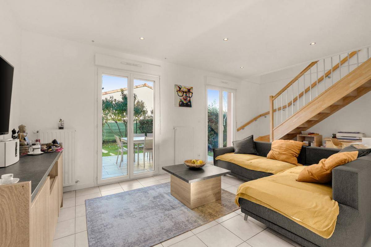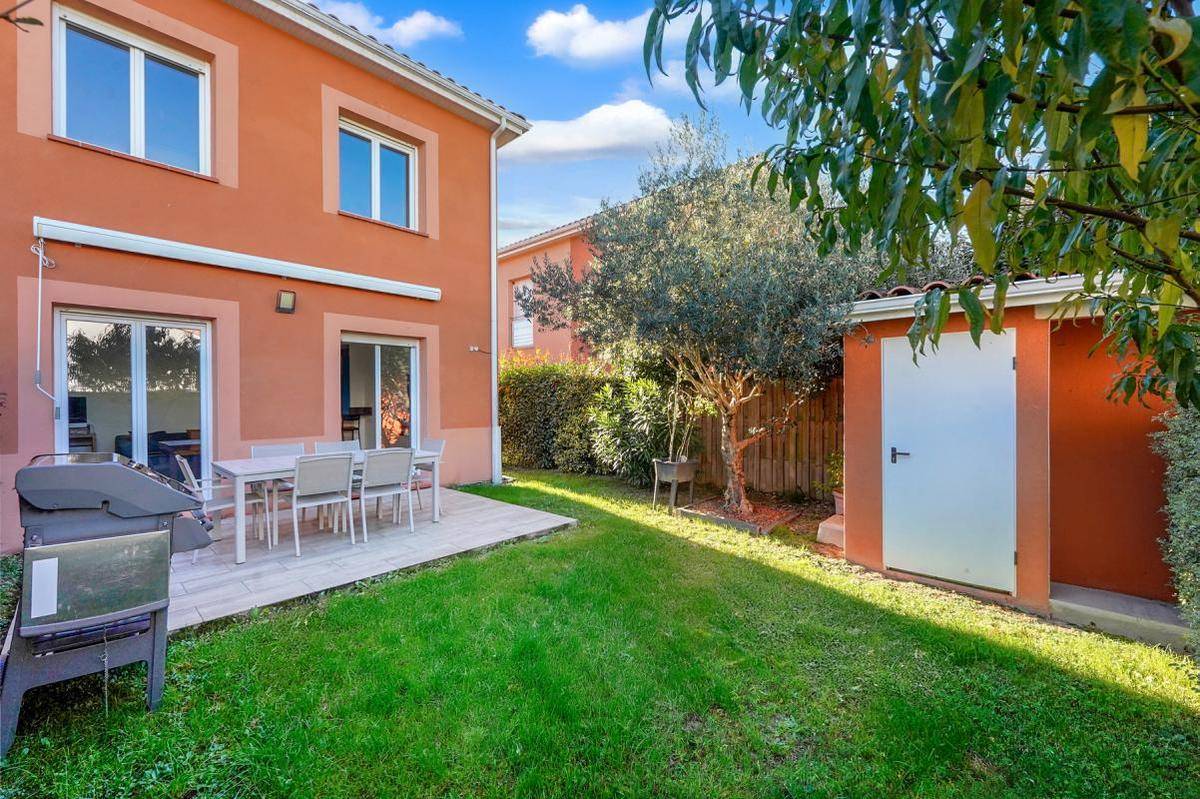 MAISONMaison mitoyenne d’un seul côté – 80 m² – 3 chambres avec rangements – Jardin – Garage – Parking privatif – Local de rangement extérieurDécouvrez cette jolie maison lumineuse et impeccablement entretenue, située dans une résidence calme et recherchée. Vous n’aurez plus qu’à poser vos valises ! Un cadre idéal pour une vie de famille paisible, à seulement quelques minutes du centre-ville et des grands axes vers Toulouse.Au rez-de-chaussée, vous apprécierez une agréable pièce de vie traversante ouvrant sur un jardin intimiste et bien exposé, parfait pour vos repas en extérieur. La cuisine ouverte, moderne et entièrement équipée crée un espace convivial et fonctionnel.Un WC séparé et un accès direct au garage complètent ce niveau.À l’étage, trois belles chambres lumineuses (12,50 m² – 12,40 m² – 9,60 m²) sont toutes équipées de placards intégrés, dont un réalisé sur mesure pour un maximum de rangement et d’optimisation. Une grande salle de bain avec WC complète l’étage.Côté confort et prestations :Climatisation réversibleChauffe-eau solaire avec Panneaux solaires pour la production d’eau chaudeMaison très bien isolée et économe en énergieLocal de rangement dans le jardin, idéal pour vélos, outils ou stockage saisonnierGarage fermé + place de stationnement privativeAtouts majeurs : maison récente 2015 , belle luminosité, rangements optimisés, quartier paisible, résidence bien entretenue et prestations éco-énergétiques.Aucun travaux à prévoir — il ne vous reste plus qu’à poser vos valises ! Un bien rare sur le secteur, alliant calme, confort et modernité.Je vous attends pour les visites !