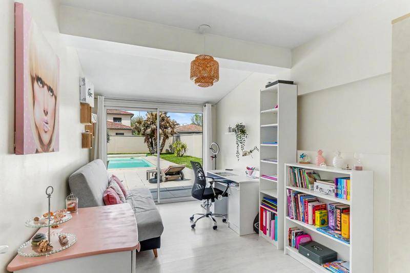MAISONImaginez une maison où chaque espace a été pensé pour le partage et la sérénité. Située au calme absolu sur une belle parcelle arborée de 1 302 m², cette villa de 154 m² dégage une atmosphère chaleureuse dès le seuil franchi.Le Cœur de Maison :- Une vaste pièce de vie baignée de lumière, où le poêle à bois invite à la détente. De larges ouvertures effacent la frontière entre intérieur et jardin.- Côté Nuit : Le rez-de-chaussée accueille 3 chambres douillettes, 2 salles de bain, 2 WC et une buanderie pratique. À l’étage, l’espace se prolonge avec 2 chambres supplémentaires et un coin bureau.- Confort Absolu : La maison est entièrement climatisée.- Le jardin, sans aucun vis-à-vis, est une véritable invitation aux souvenirs en famille :- Piscine & Terrasse : Une grande plage dallée pour vos déjeuners d’été et des après-midis de détente au bord de l’eau.- La Dépendance (34 m²) : Entièrement climatisée, elle offre un espace de liberté rare : atelier d’artiste, bureau indépendant ou maison d’amis.- Annexes : Un garage à vélos pour vos balades en bord de Garonne et des stationnements privatifs.- Prix : 546 000 €- DPE : CContactez-moi dès aujourd’hui pour organiser une visite et tomber sous le charme !
