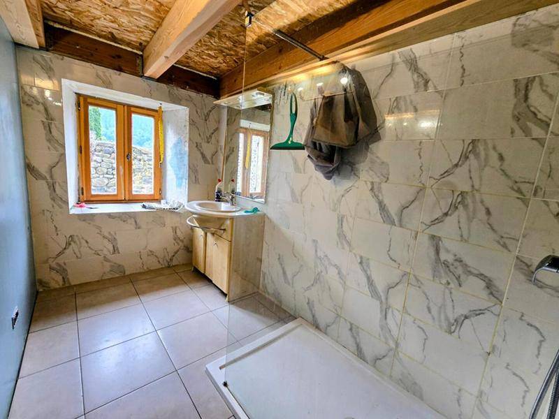 1ère maison : F3 en partie rénovée: toiture et fenêtres , dalle, plomberie, cuisine, sdb PREVOIR SYSTEME DE CHAUFFAGE