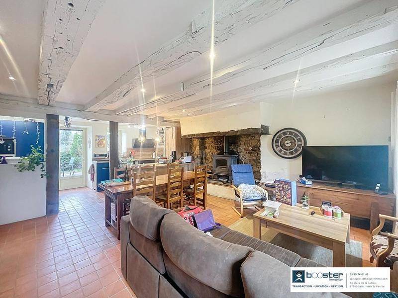 MAISONBooster Saint-Yrieix-la-Perche vous propose cette charmante maison en pierre du début du XXe siècle, située dans la campagne paisible de Château-Chervix.Le rez-de-chaussée s’ouvre sur une vaste pièce de vie , dévoilant poutres apparentes et cheminée insert, idéale pour créer une atmosphère chaleureuse. Dans le prolongement, une cuisine ouverte entièrement aménagée offre de belles surfaces de travail ainsi qu’un accès direct à une terrasse en bois, parfaite pour les repas en extérieur avec vue sur la nature environnante. Au Rdc, se trouve également une chambre et sa salle d’eau attenante, ainsi que l’accès à la grange attenante, partiellement rénovée.L’espace nuit se répartit sur les étages supérieurs et comprend quatre chambres, une salle de bain. L’agencement propose aussi de nombreux espaces de rangement, adaptés à la vie quotidienne.À l’extérieur, le jardin arboré offre un cadre privilégié, complété par une piscine hors-sol permettant de profiter des beaux jours en toute convivialité. L’ensemble du terrain est propice à la détente, au calme absolu, avec une vue dégagée sur les paysages verdoyants de la campagne limousine.La maison bénéficie du confort d’un chauffage individuel au fioul, d’un système d’eau chaude indépendant, ainsi que du double vitrage sur l’ensemble des ouvertures assurant une bonne performance énergétique (DPE : D).La propriété se situe dans un hameau à quelques minutes du centre du bourg de Château-Chervix, facilitant l’accès aux commodités essentielles, établissements scolaires et commerces de proximité. Taxe foncière : 570 €/an.Un bien de caractère associant authenticité, volumes et cadre naturel privilégié.Conformément à l’Article L.561-5 du code monétaire et financier, veuillez noter qu’une pièce d’identité sera exigée pour tous les visiteurs majeurs avant chaque visite.Les informations sur les risques auxquels ce bien est exposé sont disponibles sur le site Géorisques : www.georisques.gouv.fr