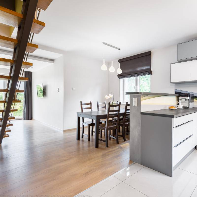 Aucune perte d'espace et de beaux matériaux vous attendent dans cette charmante maison.