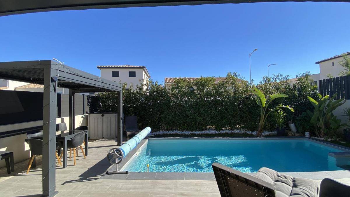 Inter-agence bienvenue !Yves Le Goc – 06*84*40*38*08Villa contemporaine avec piscine – Nissan-lez-Enserune (34440)À seulement 10 min de Béziers et 20 min des plagesVous rêvez d’une maison récente, lumineuse et sans travaux ?Cette villa de plain-pied de 2022 vous séduira par son confort moderne, son environnement calme et sa proximité immédiate des commodités.Implantée sur un terrain joliment arboré de 300 m² avec pelouse et arrosage automatique, cette maison non mitoyenne offre 95 m² habitables parfaitement agencés.L’espace de vie, baigné de soleil, s’ouvre grâce à une baie vitrée à galandage de 4 m sur la terrasse et la piscine au sel (6,60 × 3 m) équipée d’une bâche à bulles et d’une bâche d’hiver.À l’extérieur, une élégante pergola bioclimatique prolonge vos moments de détente autour du bassin.Côté nuit, trois chambres avec placards (10 m², 10,80 m², 11,30 m²) dont une suite parentale avec douche à l’italienne et lavabo.La seconde salle d’eau offre un bel espace avec baignoire d’angle, grande douche à l’italienne et double vasque, complétée par un WC indépendant.Dans le garage, des combles aménagés offrent un rangement supplémentaire.Le tout est équipé pour un confort optimal : climatisation réversible, ballon thermodynamique, excellente isolation thermique, volets roulants et porte de garage motorisés.Bien sûr, la maison bénéficie toujours de sa garantie décennale.Une villa récente, élégante et clé en main, parfaite pour une famille ou un couple recherchant le calme sans renoncer à la proximité de Béziers et des plages.Contactez-nous dès aujourd’hui pour une visite — ce type de bien se fait rare à Nissan-lez-Ensérune !Yves Le Goc – 06*84*40*38*08(Email supprimé)Conseiller en immobilier – EI (sans détention de fonds) immatriculé au RSAC de Béziers sous le numéro 800456600, titulaire de l’attestation collaborateur pour le compte de KW OxygènePrix : 327000 €. Les honoraires sont à la charge du vendeur.Référence 6954DPE A – GES ALes informations sur les risques auxquels ce bien est exposé sont disponibles sur le site Géorisques : www.georisques.gouv.fr.