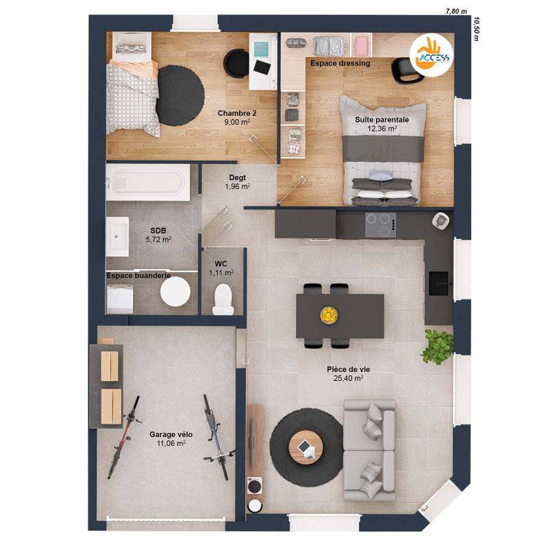 Maison neuve à construire DAHLIA_2CH_56_V1