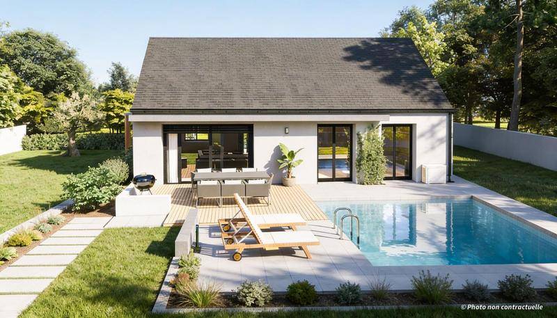 TERRAIN ET MAISONMaison neuve à construire LAURIER_3CH_91_V1 BELLE MAISON DE 3 CHAMBRES Cette maison de 3 chambres offre 91 m² habitables avant agrandissement, pensés pour le confort et l’intimité. Son véritable atout ? Une pièce de vie en L tournée vers l’arrière, ouverte sur le jardin, à l’abri des regards. En bonus : une suite parentale avec salle d’eau privative et dressing. Un cadre de vie, prêt à s’adapter à vos besoins. • Lumineuse avec cuisine ouverte donnant sur son jardin. • Beaux volumes et distribution optimisée des pièces pour votre confort de vie. • Aménagements et équipements de haut niveau : volets roulants motorisés et connectés, système de chauffage par pompe à chaleur, domotique, carrelage grand format. ET SI VOUS FAISIEZ CONSTRUIRE AVEC MAISONS ALYSIA ?Testez notre configurateur en ligne et chiffrez instantanément votre projet personnalisé, téléchargeable. • Gratuit, rapide et sans engagement. • + de 250 modèles de maisons personnalisables. • Calculettes en ligne pour identifier votre budget et évaluer votre future mensualité. Rendez-vous sur notre site maisons-alysia(.com) pour concrétiser votre rêve. Contactez-nous au (Numéro supprimé) pour finaliser votre projet ! Coût du terrain inclus dans cette offre. Hors peintures et faïence, revêtements de sol des chambres. Hors assurance dommages-ouvrage, frais de notaire et frais d’adaptation du terrain éventuels.Cette offre est proposée en collaboration avec notre partenaire foncier selon disponibilités. Contact : au (Numéro supprimé).