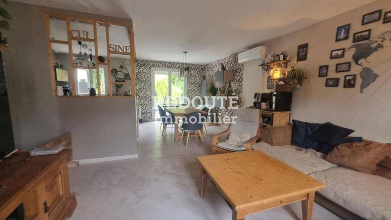 MAISONMaison de type 4 de plain pied climatisée proche toutes commodités avec terrasse et jardin, comprenant : entrée avec rangements, cuisine équipée ouverte sur vaste pièce à vivre, 2 chambres en rez-de-chaussée avec salle de douches et salle de bain, chambre enfant et bureau à l’étage.DPE : C