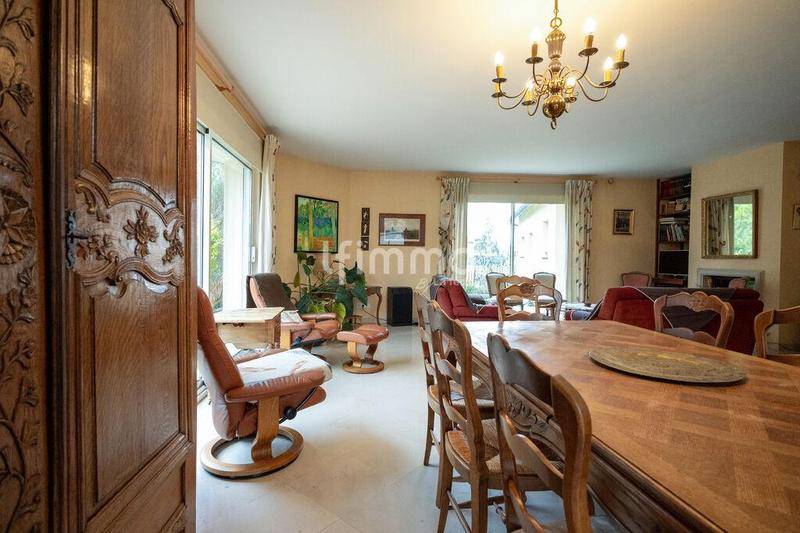 Grand séjour baigné de lumière grâce aux baies vitrées ouvrant sur le jardin
