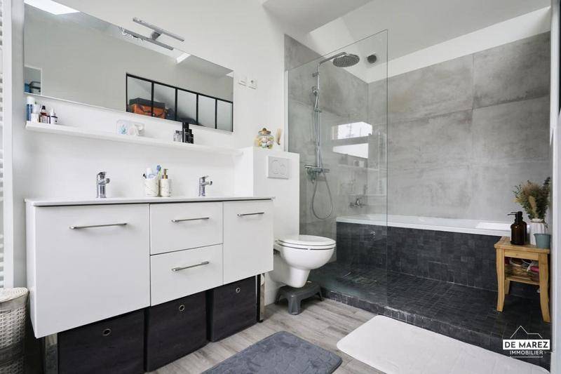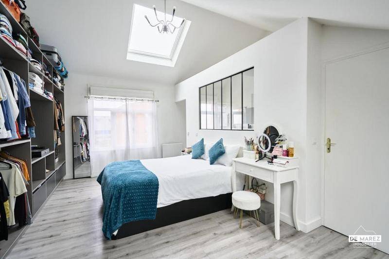 MAISONEXCLUSIVITE : Rare sur le marché, cette magnifique maison individuelle des années 30 de 159 m² allie le charme intemporel de l’ancien notamment grâce à de beaux volumes et une hauteur sous plafond remarquable, tout en bénéficiant de prestations modernes haut de gamme.Entièrement rénovée avec goût, elle offre un confort et une luminosité exceptionnelle, où chaque détail a été pensé pour simplifier votre quotidien.Dès l’entrée, l’élégance et les volumes se révèlent : un hall accueillant distribue l’escalier, l’accès à la cave et un WC invités.L’espace de vie de près de 95 m², baigné de lumière naturelle grâce au puit de lumière et à la grande baie vitrée s’ouvre sur une cuisine entièrement équipée de qualité, pensée dans les moindres détails, accompagnée d’une arrière-cuisine spacieuse et fonctionnelle.Cet espace crée un cadre idéal pour recevoir ou partager des moments en famille ou entre amis.La continuité avec le jardin et la terrasse confère une atmosphère d’exception, lumineuse et apaisante.Le jardin de 674 m² devient un véritable prolongement de la maison, propice à la détente et aux repas en extérieur.L’espace nuit, bien agencé et confortable, se déploie sur deux niveaux :Premier étage : deux chambres spacieuses de 17 m² et 14 m² avec rangements ainsi qu’une salle de bains fonctionnelle avec fenêtre.Dernier étage : une suite parentale incroyable et lumineuse sous toit cathédrale de 35 m², avec grand dressing intégré de qualité et salle de bains privative comprenant baignoire, douche et WC, offrant un véritable cocon.Cette maison allie charme et sérénité, avec des prestations techniques irréprochables : isolation performante, toiture en parfait état, électricité refaite, diagnostics énergétiques excellents (DPE C – GES A). Aucun travaux n’est à prévoir : vous n’avez plus qu’à poser vos meubles et profiter de ce lieu d’exception.Idéalement située à Lille-Hellemmes, à seulement deux minutes à pied du métro Square Flandre et d’une station VLille, la maison offre un accès rapide et pratique vers Lille et, pour les professionnels travaillant à Paris, permet une connexion facile pour accéder à la gare.À 10 minutes du centre de Lille et à proximité immédiate de Villeneuve-d’Ascq, elle bénéficie d’un emplacement privilégié, proche des commerces, écoles, universités et axes routiers.Un bien d’exception où charme, lumière et volumes se conjuguent pour créer un cadre de vie unique et un confort quotidien incomparable…Les informations sur les risques auxquels ce bien est exposé sont disponibles sur le site Géorisques : www.georisques.gouv.fr